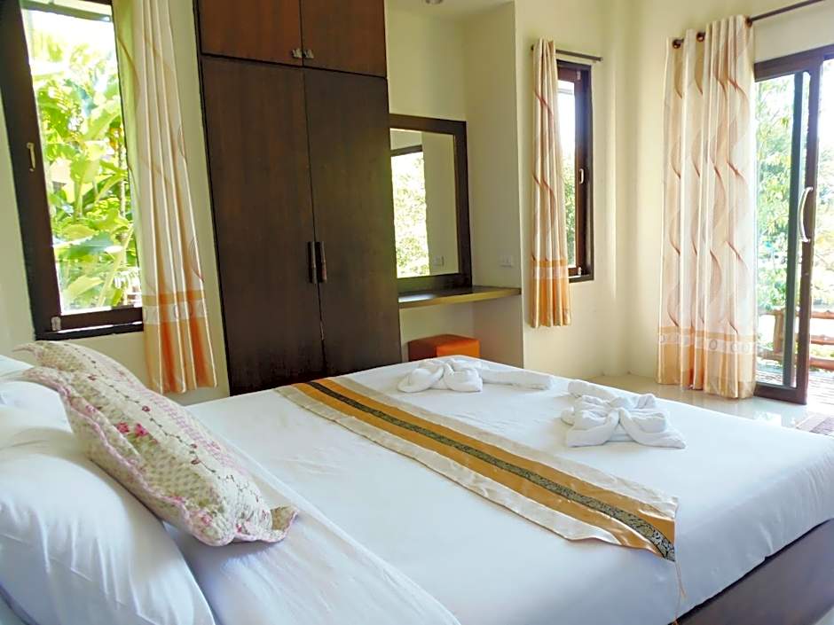 Air-conditioned villa features a private terrace with garden views. Includes a flat-screen cable TV, a fridge and an private bathroom.
